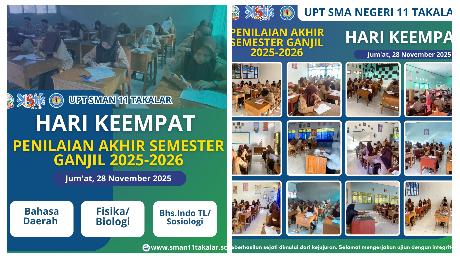 POLONGBANGKENG TIMUR, - UPT SMAN 11 Takalar terus melanjutkan rangkaian Penilaian Akhir Semester (PAS) Ganjil Tahun Pelajaran 2025–2026. Pada hari keempat pelaksanaan, Jum'at (28/11/2025) suasana ujian terlihat kondusif dengan tingkat kehadiran siswa yang tetap tinggi. Antusiasme peserta didik tampak dari kesiapan mereka memasuki ruang ujian dan menyelesaikan soal-soal yang diberikan...