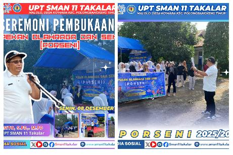 POLONGBANGKENG TIMUR, — Menjelang pelaksanaan Pekan Olahraga dan Seni (Porseni) 2025, OSIS SMAN 11 Takalar mulai mempersiapkan berbagai rangkaian kegiatan yang akan digelar pada Senin–Jumat, 8–12 Desember 2025. Kegiatan tahunan ini menjadi momen yang selalu dinantikan seluruh siswa sebagai ajang menyalurkan bakat, kreativitas, sekaligus mempererat kebersamaan an...
